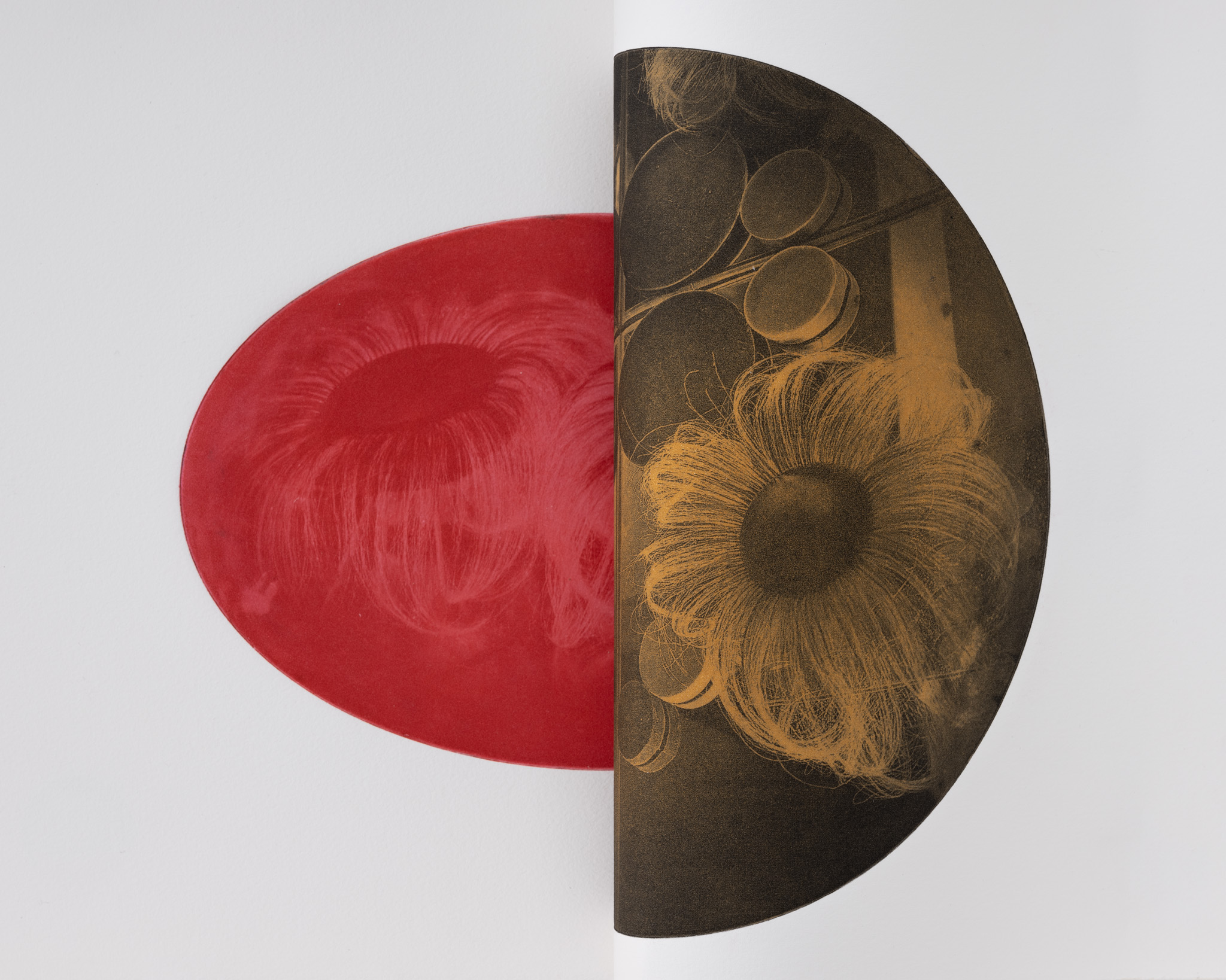 Form Study (Opening Up), is a series of prints that I recently developed as formal research into the use of unconventionally shaped printing plates in the photogravure technique, a technique that I have been enjoying exploring already for a while. This is coupled with methods of folding, curling, or peeling the printed paper into three-dimensional configurations. In these works, two separate sheets of paper are positioned together, with one sheet partly curled back, allowing the prints to combine into various graphic formations. The sheets are typically printed with more than one plate simultaneously, which is part of the fun as it requires particular accuracy throughout the printing process.