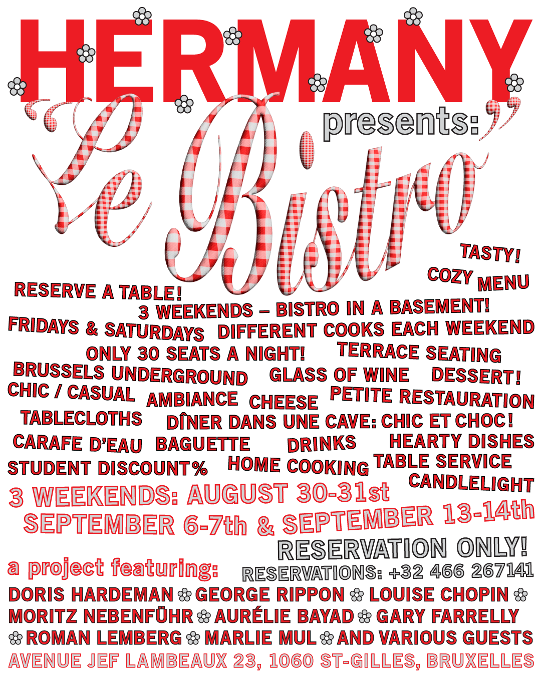 Given the limited seating, reservations are essential and can be made via instagram, email or send a message to +32 456 267 141.